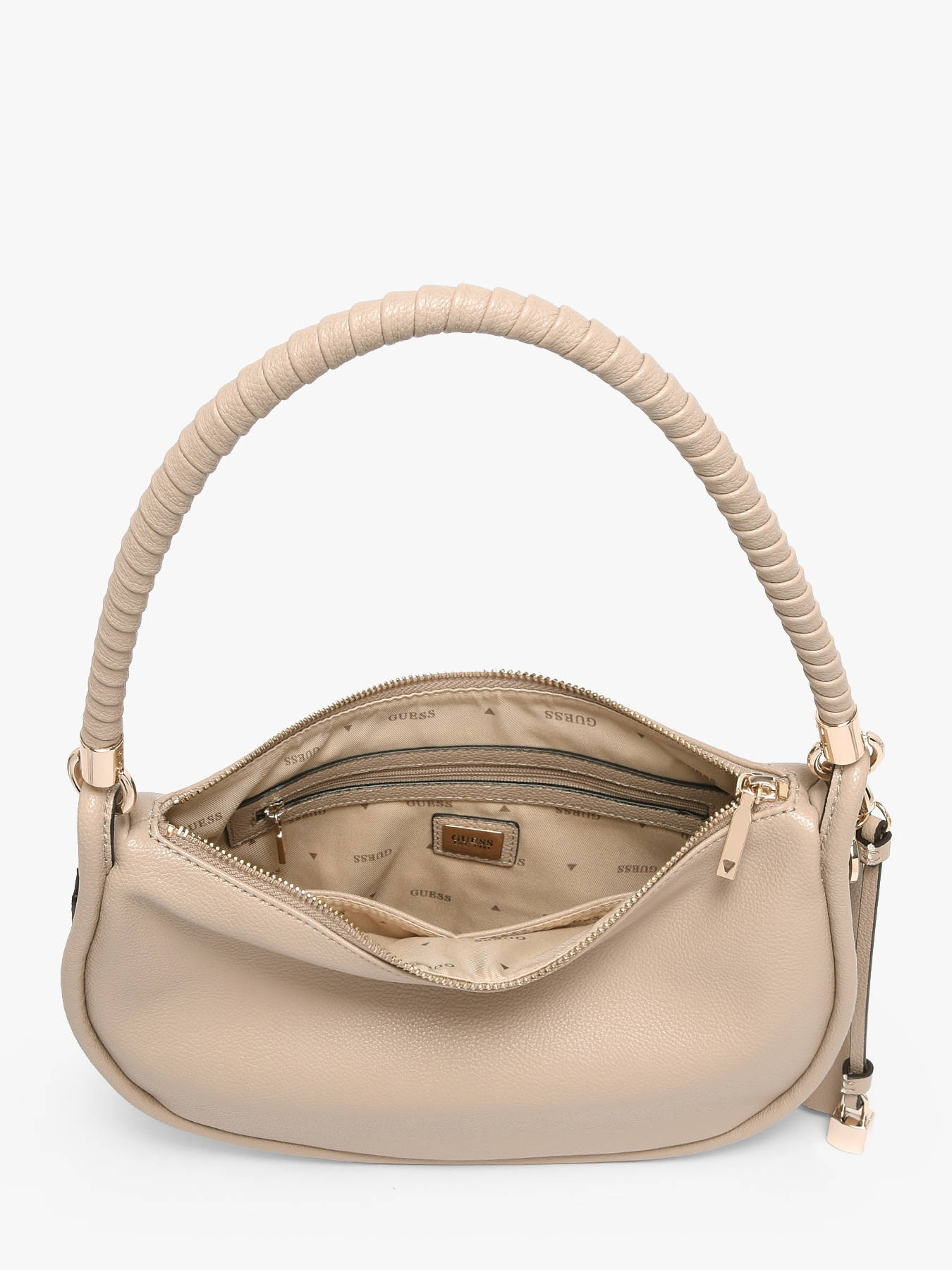 Le sac porté épaule ISOLA GUESS en P.U allie élégance moderne et praticité au quotidien. Sa fermeture zippée sécurise vos effets personnels, tandis que l’intérieur comprend un compartiment principal, une poche zippée et deux poches simples, offrant un rangement organisé et fonctionnel pour vos essentiels. Compact et structuré, ce sac se porte confortablement à l’épaule grâce à sa hauteur d’anse de 20 cm, alliant confort et style. Son design épuré et sa finition soignée apportent une touche chic et contemporaine à vos tenues, que ce soit pour un look urbain ou plus sophistiqué. Chaque détail, de la qualité du P.U aux finitions précises, reflète le savoir-faire GUESS, faisant de ce modèle un accessoire pratique, tendance et élégant, idéal pour celles qui recherchent style, organisation et confort au quotidien.
